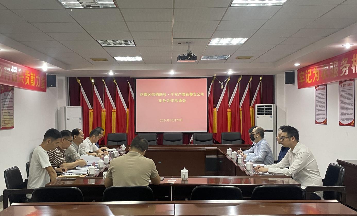10月29日上午,平安产险花都支公司团体分管总彭保建带队到花都区供销联社进行业务合作洽谈。此次是近期在涉农工作领域进行的第二轮交流。花都区供销联社党组书记、理事会主任杨福灿和党组成员、理事会副主任胡文峰,以及基层业务科、新华供销社、狮岭供销社、广州供销土产日杂有限公司相关同志参加。