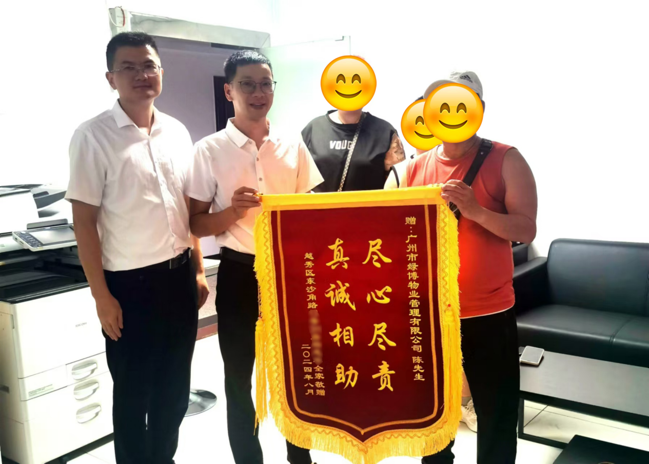 广州市供销农业发展集团有限公司物业与安全管理部(广州市绿博物业管理有限公司)获得东沙角路一住户赠送的锦旗。锦旗上“尽心尽责、真诚相助”八个大字表达了住户对农业集团物安部工作态度、服务品质的高度认可。
