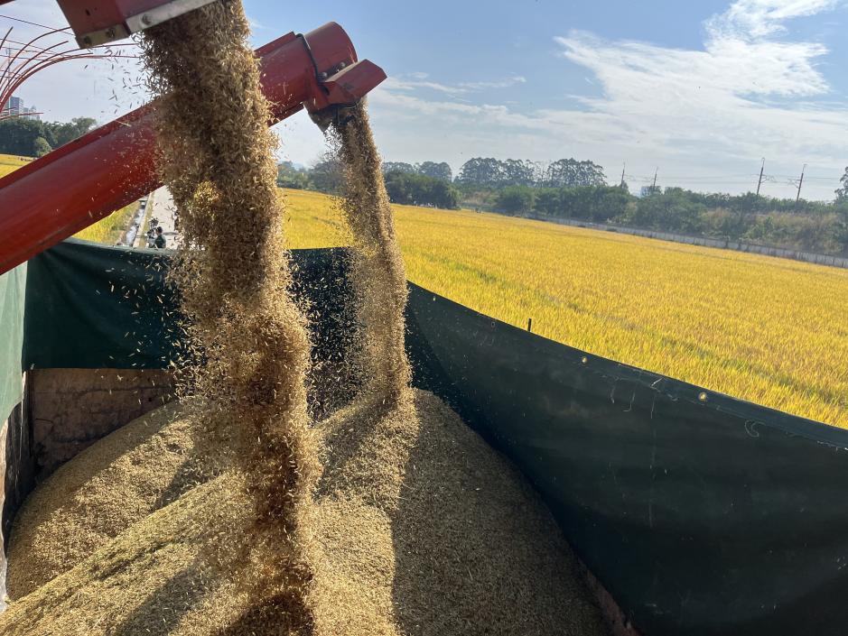 今年夏良农业公园种植了约140亩晚稻,因精准的管护灌溉施肥,平均亩产能达到900斤左右。据白云区供销联社服务“三农”工作人员介绍,这茬晚稻应用了水稻节水减肥低碳高产栽培这项广东省、广州市农业主推的农业新技术。通过肥、水等措施的优化集成,降低化肥、灌溉水、劳动力等投入,在保持水稻高产的同时,能有效解决当前水稻生产水肥用量高、温室气体排放强度大、高产与碳减排难兼顾等问题,具有“低排放、低污染、低投入、高产量”的特征,能有效实现粮食增产、农民增收和环境保护协同发展,助力实现碳达峰碳中和目标。此外,这项技术还会在白云区供销联社下属基层社中进行推广应用,帮助农户们更好地实现降本增收。